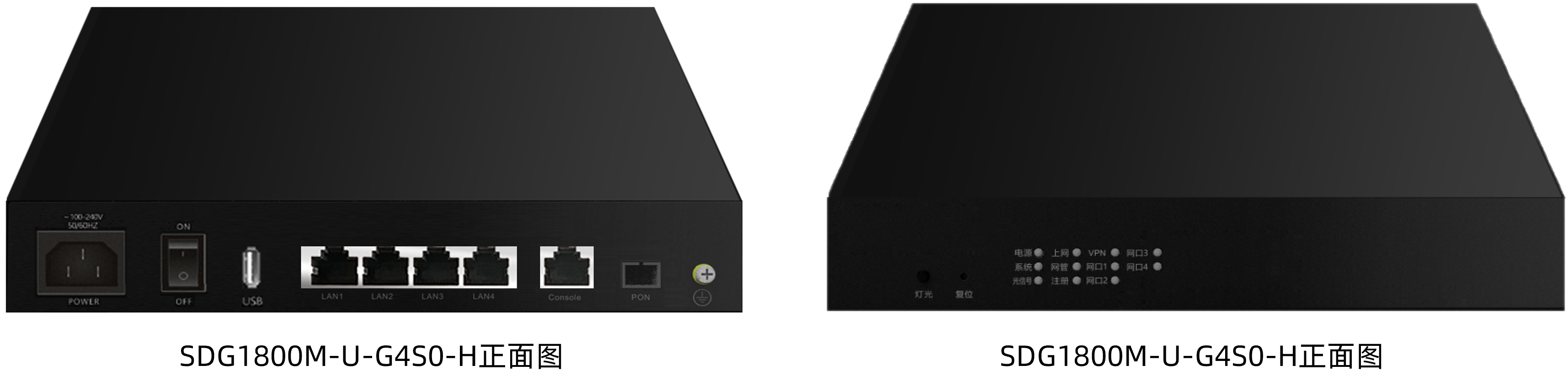SDG1800M-U-G4S0-H 是一款 4 网口工业级 PON 网关产品,设备主要用于视频监控场景,上联接口采用 PON 接口,具有 4 个千兆以太网接口、WLAN 接口提供以太网/IP业务,也可与视频服务器、IP 摄像机等设备配合使用,以提供业务接入能力。