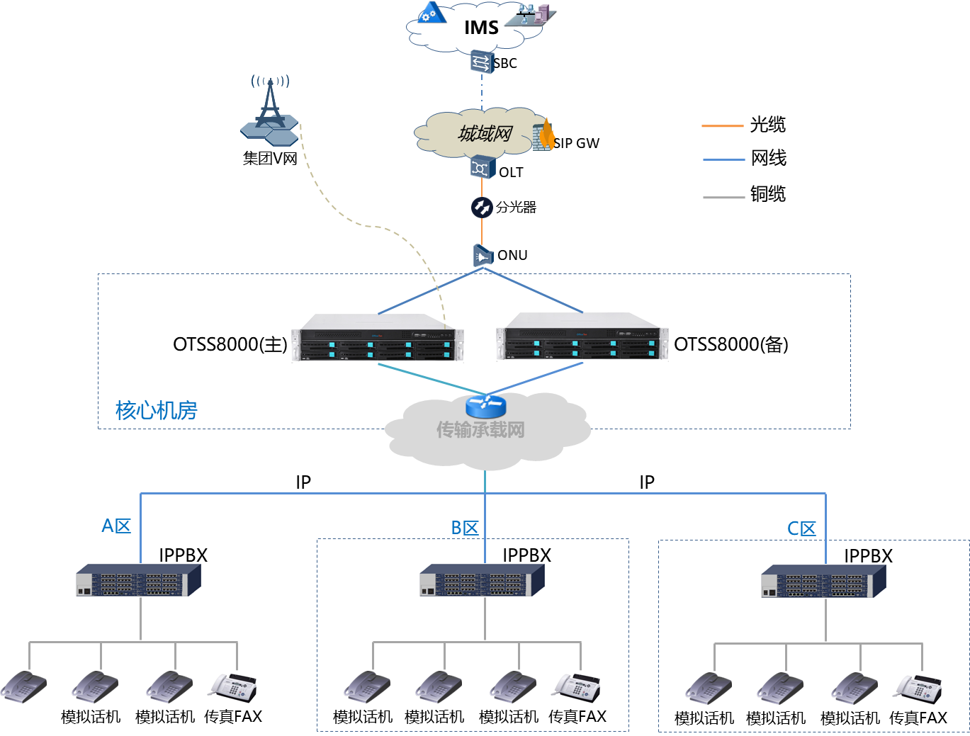 支持ATO环路中继、数字中继30B+D、IP中继SIP/IMS等运营商电话线路。